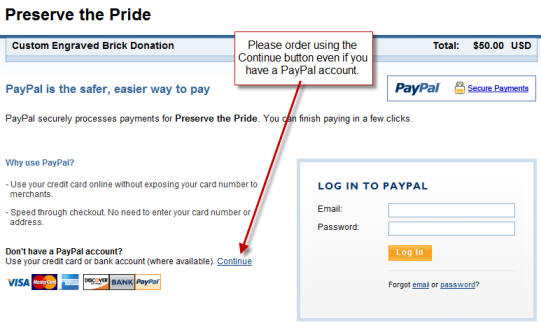 When paying using PayPal, please do not log in to your PayPal account (if you have one). Please hit the continue button as shown below.